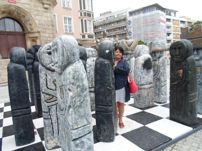 A Dorocie zrobiłem zdjęcie przed ratuszem, wśród rozstawionych tam figur. Aby pamiętała, że na mojej szachownicy jest tylko pionkiem:
