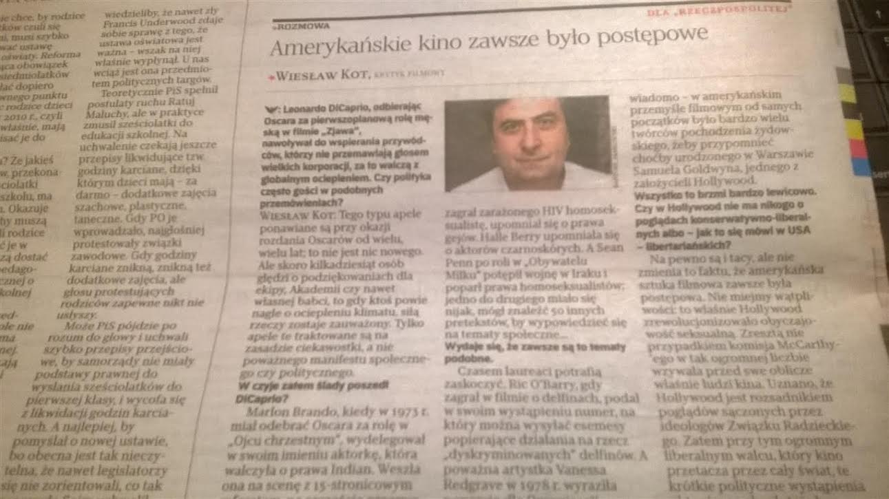 W „Rzeczpospolitej” krótki wywiad o Oscarach. Na gaszenie świec.: