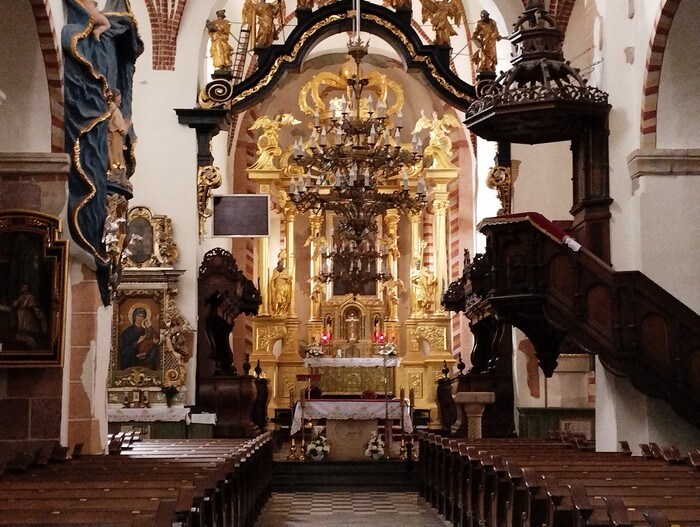 Z trasy. Strzelno, po raz kolejny. Kościół św. Prokopa, z tymi romańskimi kolumnami.: