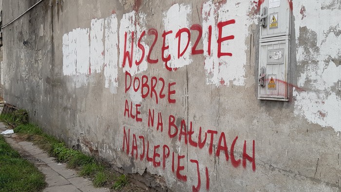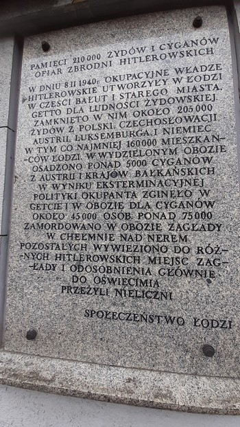 Łódź. Getto. Czytam właśnie dramatyzowaną opowieść o tym „państewku”, jak je chciał widzieć Chaim Rumkowski. Idzie to opornie, bo ileż ludzkiego nieszczęścia można sobie przyswoić w jeden wieczór? Stąd wyjazd na Bałuty. Rynek, na którym władze getta miały siedzibę, na okoliczne ulice, na których się to wszystko rozgrywało. I Park Ocalałych z Janem Karskim (miałem zaszczyt poznać, rozmawiać…) siedzącym pod drzewem na szczycie kopca.: