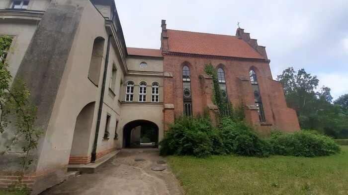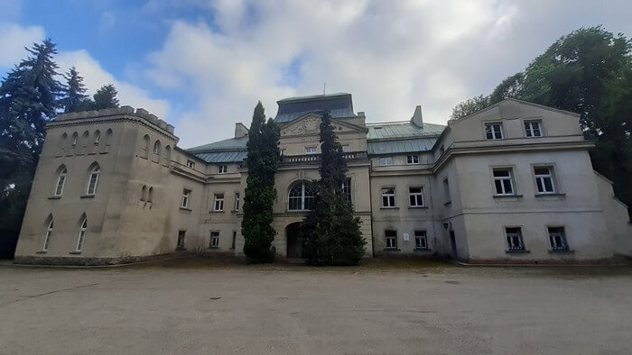 Koncepcja przymiarkowa na lato jest taka, że skoro zagranica praktycznie odpada, a Polska zjeżdżona dość gruntownie w miejscach potocznie uznanych za ciekawe, pora udać się do tych drugich. Czyli zygzakiem po miejscach odludnych, które się bezmyślnie pominało. Więc chwila na Ziemi Kościańskiej. A tu pod Racotem najnowszy pałac prawie pod wiechą.: