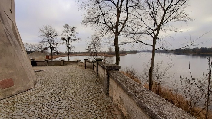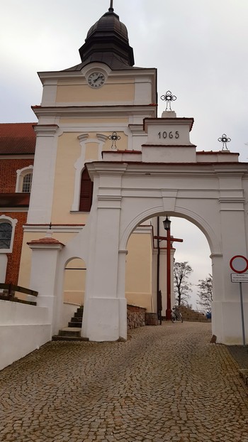 Mogilno. Wiekowe opactwo na wysokim brzegu jeziora.