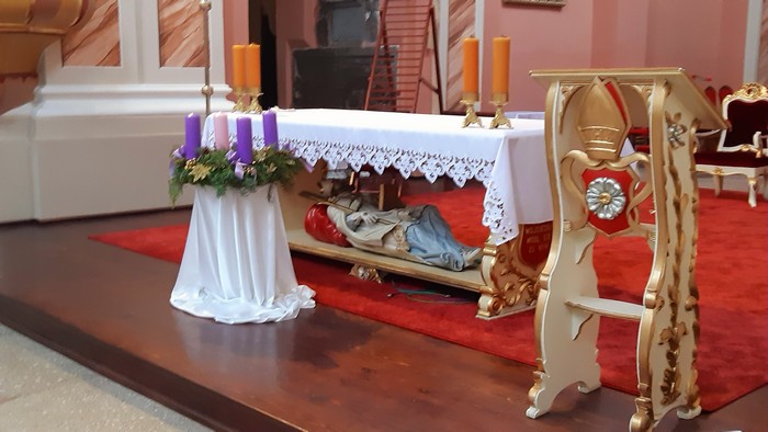 Przed południem wykłady z prasoznastwa, więc żeby życie było do wytrzymania, po południu najpierw Trzemeszno. Tu w zjawiskowej kolegiacie dwa zaskoczenia. Najpierw mały Jezus na drabinie. Zadziwiająca instalacja. A do tego jeszcze biskup, który zdrzemnął się pod ołtarzem. Nie za dużo tej sztuki konceptualistycznej jak na jedną świątynię?:
