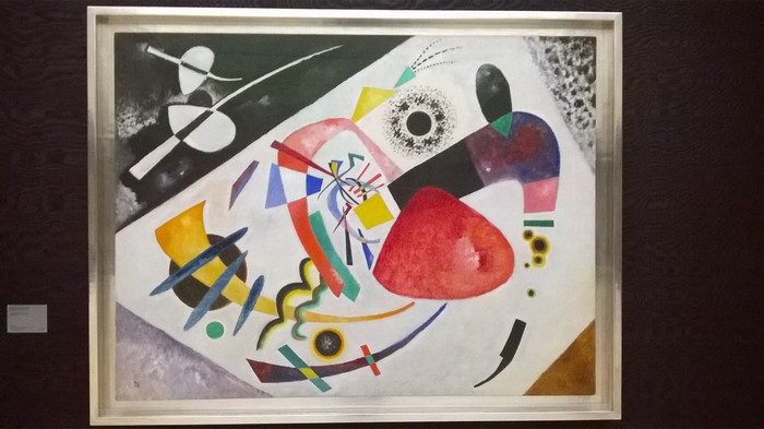Galeria Lenbachhaus w Monachium. Dużo Wasilija Kandinsky’ego. Po raz pierwszy widzę tyle oryninałów malarza. Choć w pamięć zapadł mi 50 lat temu. Wtedy wertowałem stronę po stronie „Małą Encyklopedię PWN”, bo cóż było robić w małym podkarpackim miasteczku..? I dopero teraz widzimy się twarzą w twarz.: