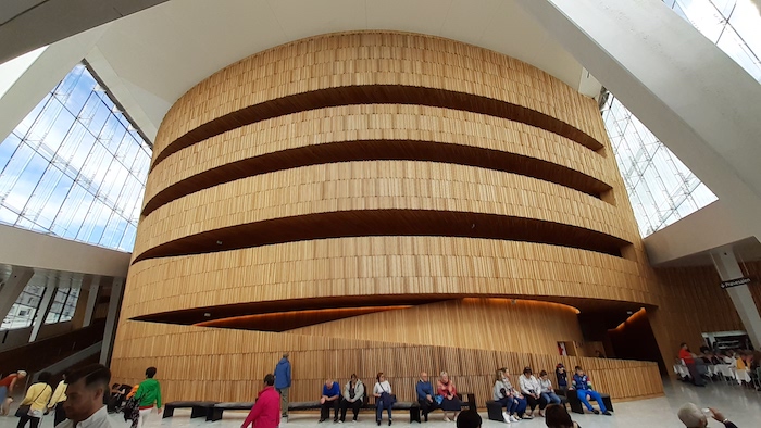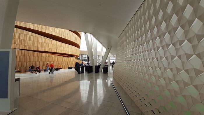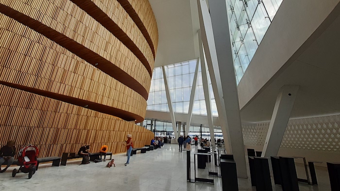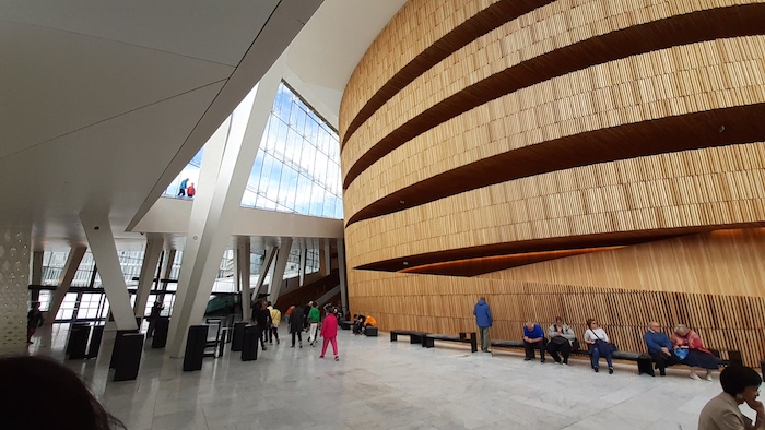 Wyłoniły się dwie kwestie, które wywołały burzę wśród komentatorów tego bloga. Pierwsza to kwestia Opery w Oslo. Byłem w niej bardzo krótko – toaleta! – ale, jak Janek Himilsbach w Hali Mirowskiej, „zrobiłem kilka zdjęć”. Choćby z racji, iż Opera bardzo Halę Mirowską przypomina.: