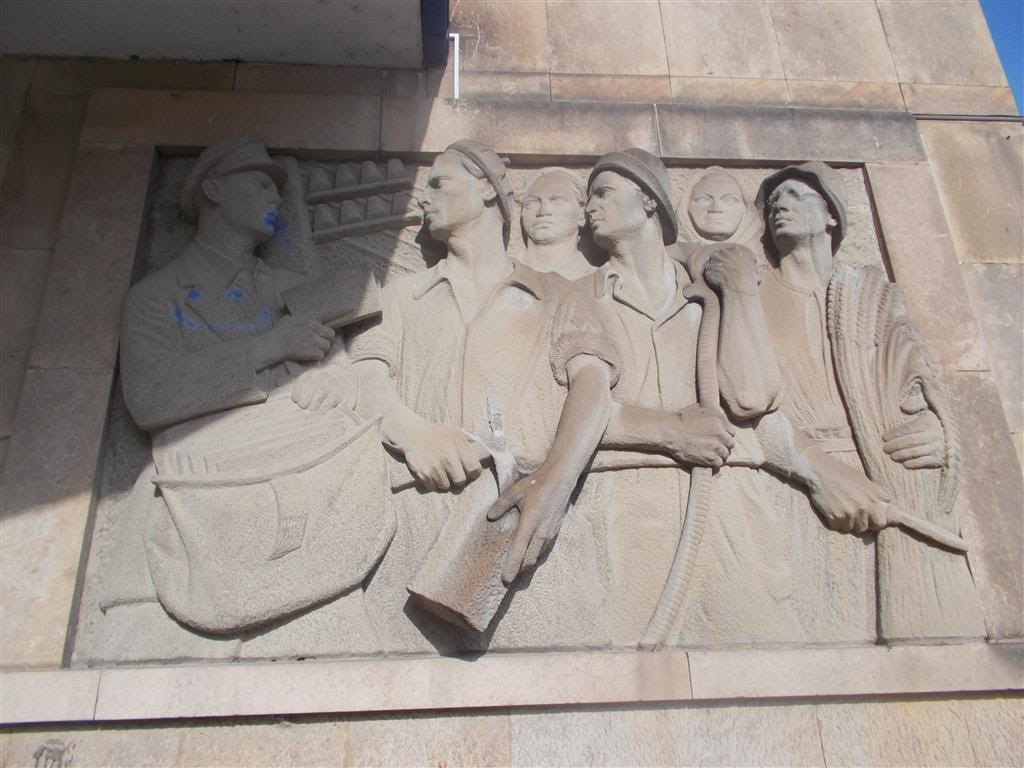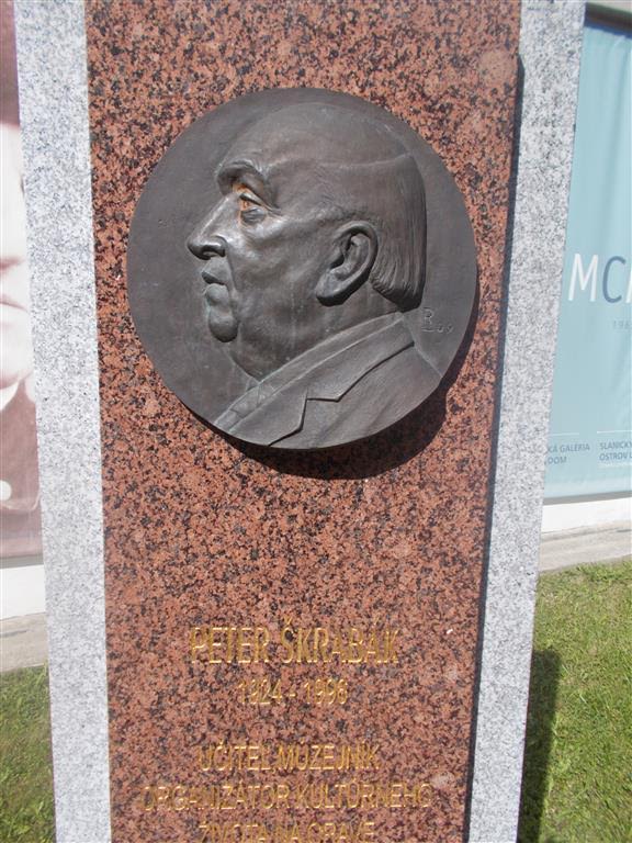 Skoczyliśmy na Słowację. Miłe małe miasteczka. Dolny Kubin, medalion miejscowego zasłużonego, na którym wzorował się Hitchcock budując swój wizerunek medialny.: