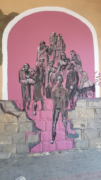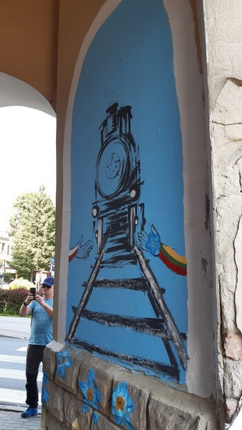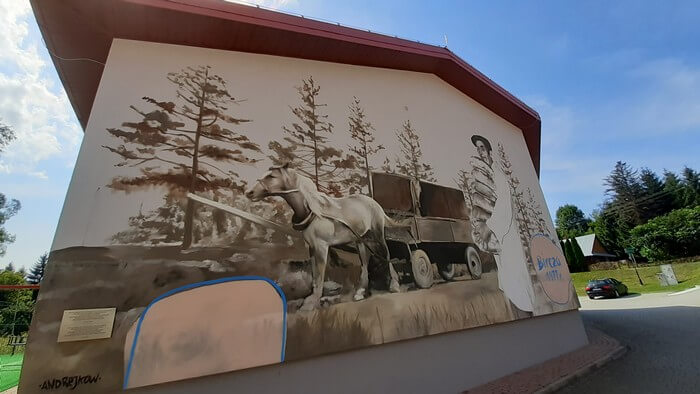 Z trasy. Bircza. Mural obok restauracji, gdzie jedliśmy obiad.: