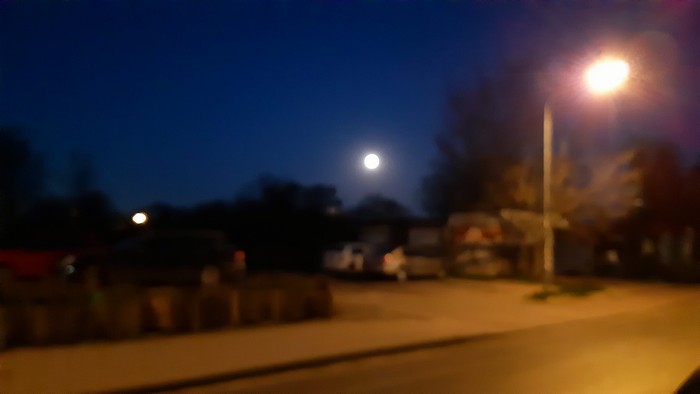 Wyborcza: „We wtorek największa pełnia Księżyca 2020 r. Nie przegapmy jej! Podczas pełni jest za jasno na obserwacje czegokolwiek poza samym Księżycem. Dzisiejszej nocy będzie on jeszcze większy i jaśniejszy niż w czasie innych pełni tego roku. Przed nami superpełnia superksiężyca”. Księżyc w niezłej pełni widziałem już dzisiaj rano, z tym że trudno go sfotografować. Dwie (nieudane) próby: w mieście i poprzez gęstwę drzew.: