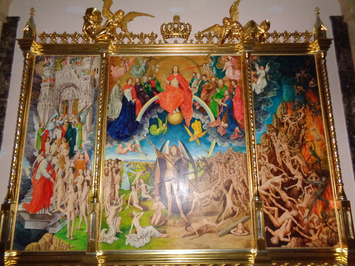 Wspomnienie z Lichenia. Kontemplowaliśmy tam słynny obraz „Sąd ostateczny” Hansa Memlinga. Kopię widzieliśmy w marcu tego roku w Muzeum Narodowym w Gdańsku. Wtedy nawet kupiłem reprodukcję. Zawsze to miło poobcować z wielką sztuką.: