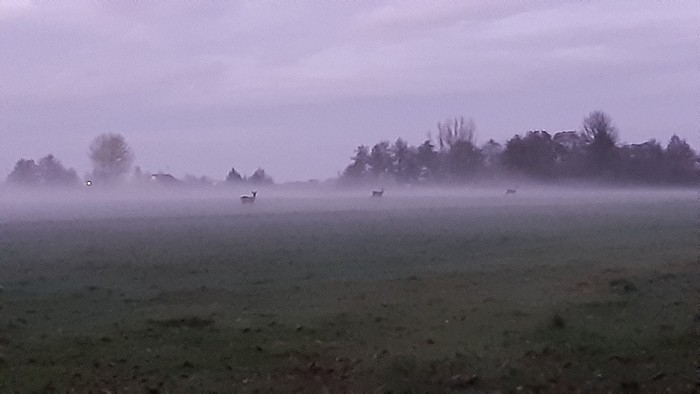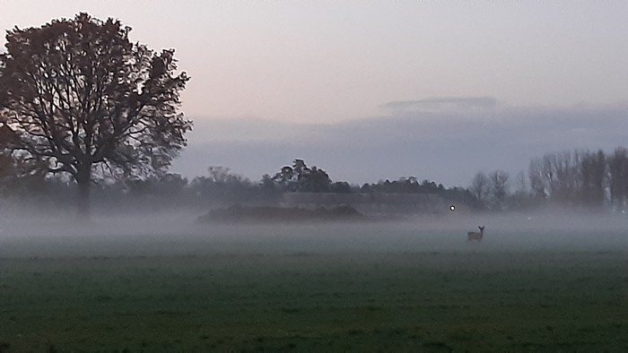 Sarny we mgle 17 listopada 2020Co niesie dzieńWiesław Kot Dzionek zaczyna się wykładem online. Jak zwykle.: Tak więc las tylko wieczorem, niestety. Mgła i sarny. Ale i tu dociera wojna polsko-polska.: