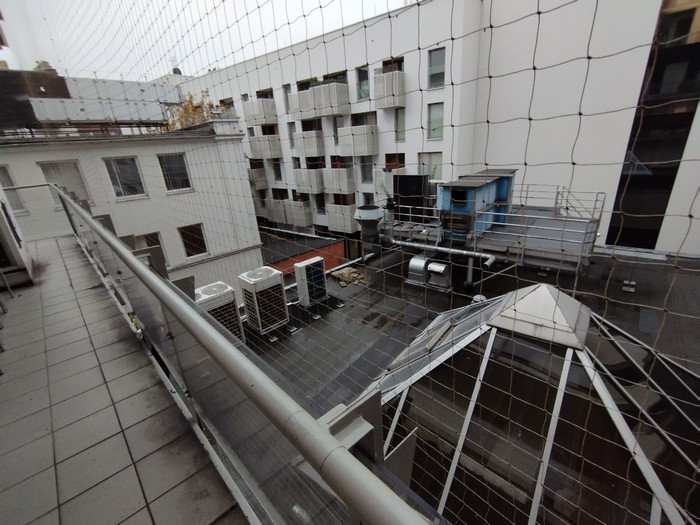 Poznań nie dość, że sparaliżowany komunikacyjnie (maraton uliczny), to jeszcze w deszczu. Więc na wyklady pieszo, zmoknięty i w nastroju pod zdechłym Azorkiem. Uczelnia w nowoczesnym gmachu, ale jego rewers nie jest już tak budujący.: