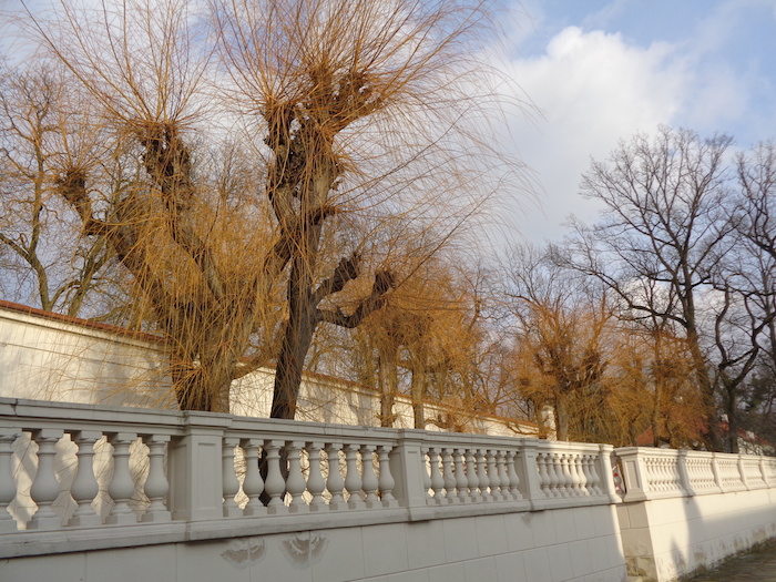 Te przypałacowe wierzby (?) powinny już puszczać pąki, a tymczasem tylko ładnie wyglądają.: