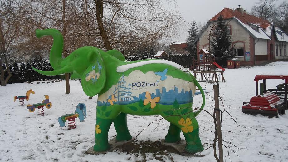 Przedszkole w Morasku. Zielony słoń. Ale jakoś nie bardzo. Po pierwsze tylko jeden, a po drugie: gdzie kokardka?