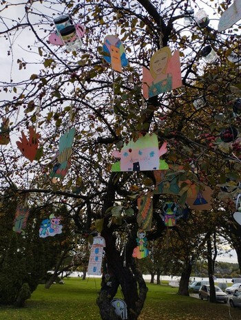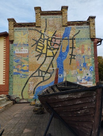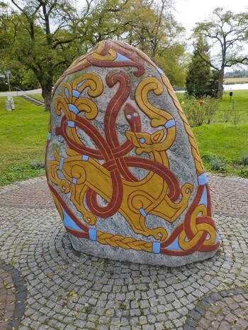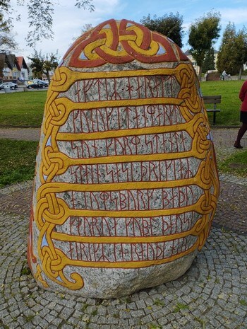 Z trasy. Wolin, zwłaszcza głaz upamiętniający Sinozębego. Bo angielsku – Bluetooth.: