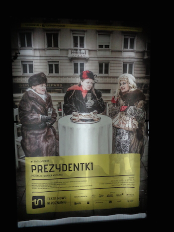 Wieczorem na małej scenie Teatru Nowego w Poznaniu „Prezydentki” (wg Wernera Schwaba). Wchodzi się przez Zaułek Krystyny Feldman.:
