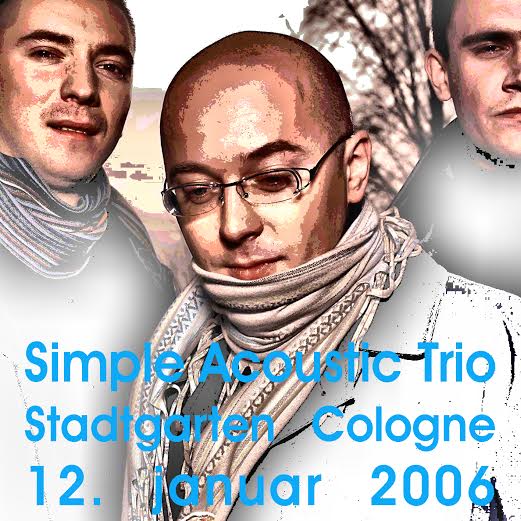 Simple Acoustic Trio „Stadtgarten Cologne 12. Januar 2006”. Polskie trio na koncercie. Muzyka kameralna, skupiona wokół fortepianu w trakcie nieustannej improwizacji. Mniej be bopu, więcej nastroju, więc instrumenty towarzyszące wykonują tylko niezbędne stuki i szelesty. Publiczność niewielka, raczej zasłuchana, mało knajpiana. Wrażenie szemrzącego strumyka: