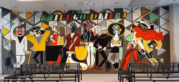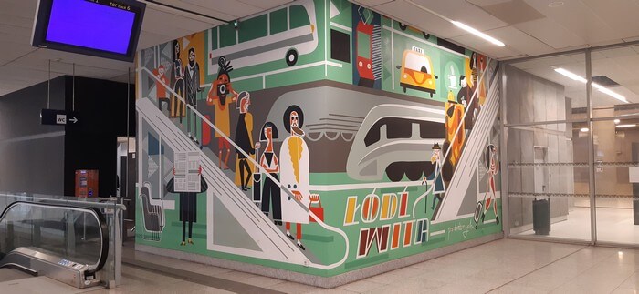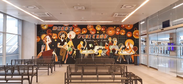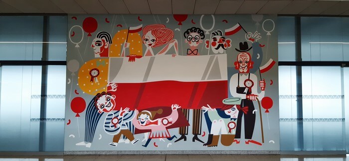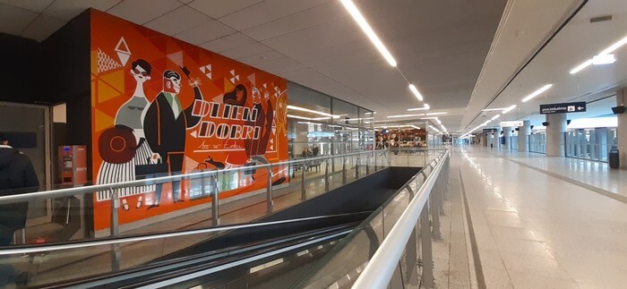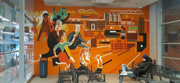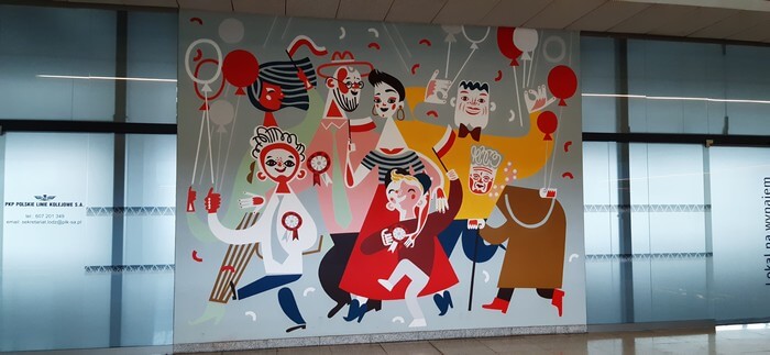 Dworzec Łódź Fabryczna. W niedziele popołudnie wyludniona i tak cicha, że przypominają się „Stepy Akermańskie”. Można wypić kawę w bufecie „Coffee to Go” i kontemplować freski.: