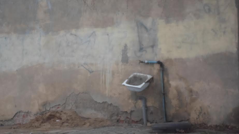 Wokół tyle nostalgicznego piękna, całego wychylonego w przeszłość. I ciągle brakuje czasu, by je kontemplować. Granowo. Zapomniany kran na ścianie ubikacji przy dawno nieczynnej stacji kolejowej.: