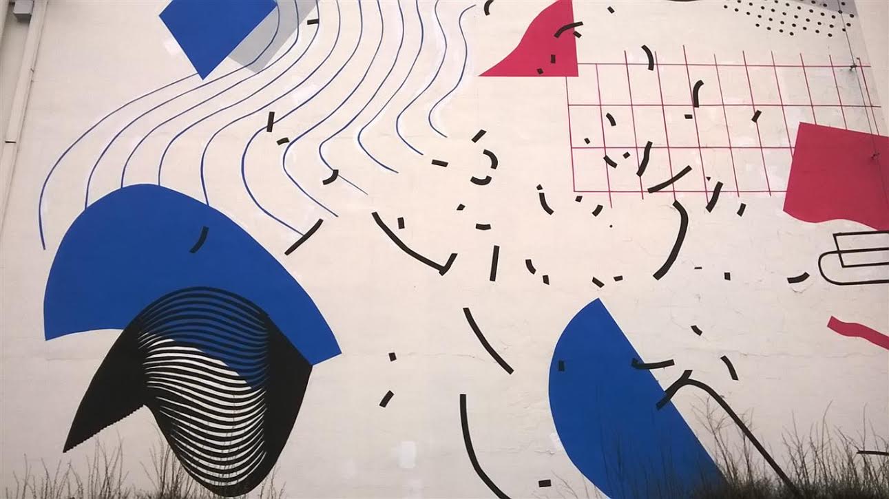 Poza tym studenci – o czym pisałem wczoraj – nie tylko malują martwą naturę zamiast bitwy pod Grunwaldem. Ale też samą bitwę. Tylko w przekładzie na język nowoczesnej plastyki. Mural obok szkoły. To czerwone u góry to – naturalnie – Ulrich von Jungingen.: