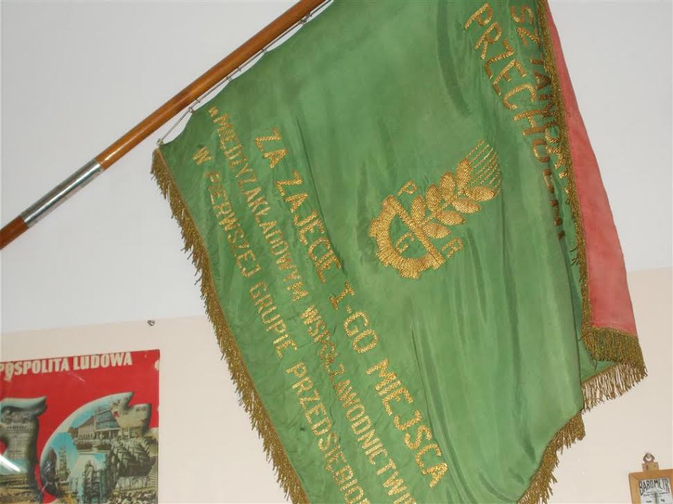 Wita nas sztandar przechodni. Zresztą trudno sobie wyobrazić PGR bez sztandaru.: