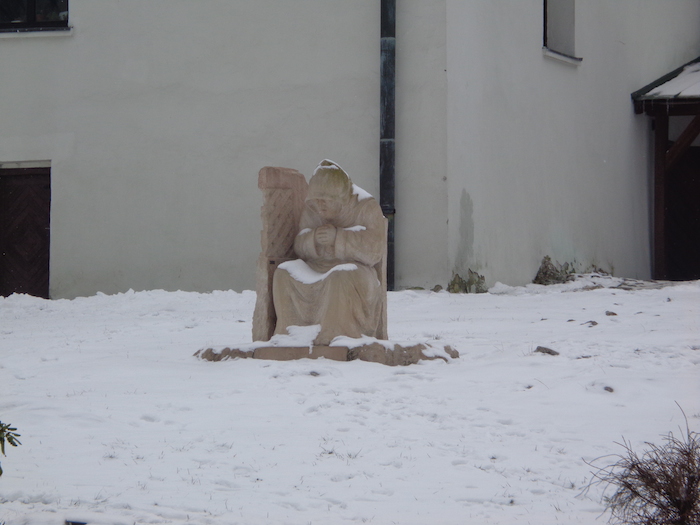 Kielce. Klasztor na Karczówce. Byłem strasznie dawno albo i wcale. Tu m.in. krzyż upamietniający powstanie styczniowe, figura spowiadającego zakonnika i tablica pamiątkowa ku czci innego. Jak ma na nazwisko Tomaszewski, to na imię powinien mieć Kolumbin. Kielczanie od wieków słyneli jako ludzie dowcipni: