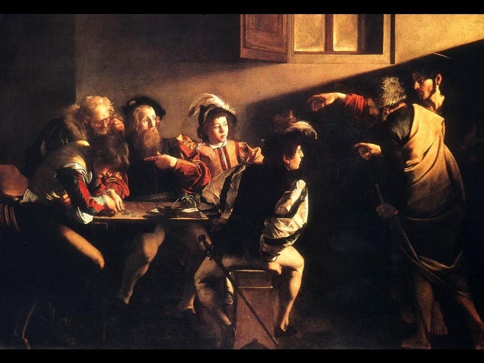 Michelangelo Merisi da Caravaggio (+1610) i słynny obraz „Powołanie św. Mateusza”. Mateusz siedzi, jak wiadomo, w komorze celnej i nie jest pewien, czy wezwanie Mistrza skierowane właśnie do niego. Co więc mówi? „ You talking to me? Then who the hell else are you talking to? You talking to me? Well, I’m the only one here. Who the fuck do you think you’re talking to?”: