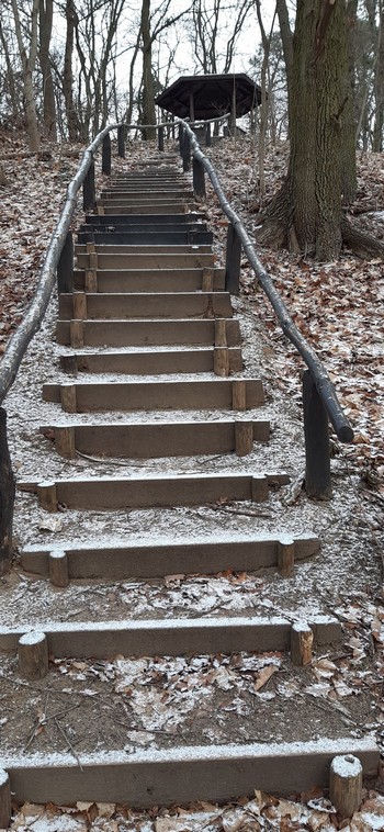 Co miało zostać zrobione przed Świętami, zostało zrobione i trochę się pętamy. Jezioro Góreckie. Trochę pobrykałem po tych schodach, co odczułem w nogach dopiero wówczas, gdy musiałem wejść na własną klatkę.: