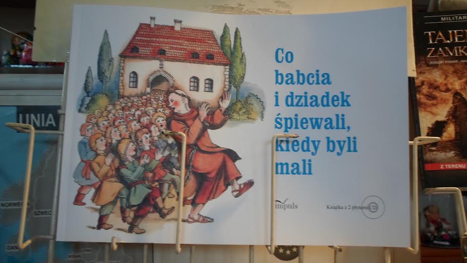 Tu w zamkowej księgarence śpiewnik dla dzieci. Wszystko O.K. – tylko dlaczego ów „dziadek” nosi habit zakonny?