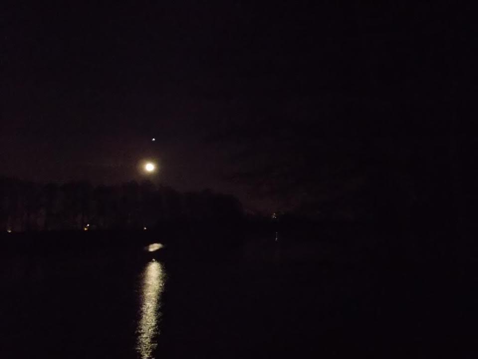 Nowy rok witamy w leśnej głuszy nad jeziorem Rosnowskim, gdzie za dnia często się włóczę. Zdjęcie od biedy oddaje toń i księżyc, ale – niestety – już nie fajerwerki, od których zagotowały się okoliczne wioski.: