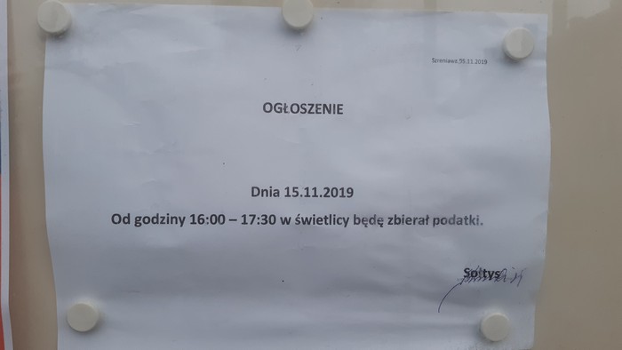 W Szreniawie ogłoszenie na tablicy sołeckiej. Sam też bym chętnie wywiesił podobne.: