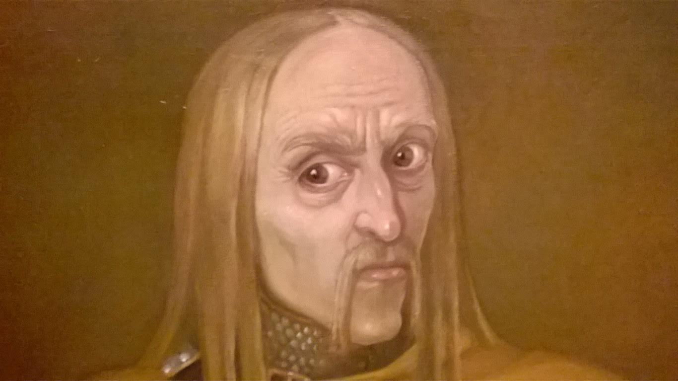 Portrety lokalnych władców. Książę Rudolf. W podpisie, że był „mężny i pobożny”. Po co pisać? Przecież to widać.: