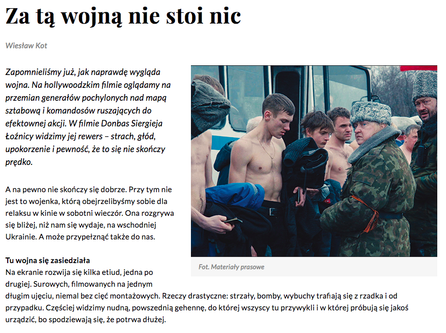 W Przewodniku Katolickim o filmie „Donbas”.: