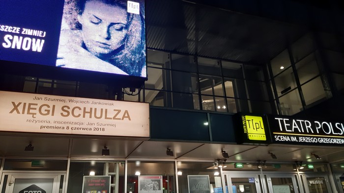 I wieczorem w Teatrze Polskim na scenie także jego proza (tylko na to były bilety – wiadomo). Sama proza wymamrotana pod nosem, zresztą nie było jej tak wiele. Za to inscenizacja iście musicalowa. Cóż, dyrekcja dała zarobić wielu artystom i tzw. ludziom teatru.: