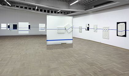 Z cyklu: Miło spojrzeć – Edward Krasiński. Poza wszystkimi innymi zasługami jest ten niebieski pasek, który na tej samej wysokości artysta przez lata naklejał na wszystkim, jak leci.: