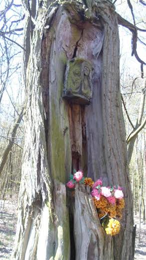 Za to pod starą, leśną kapliczką kwiecie tzw. całoroczne.: