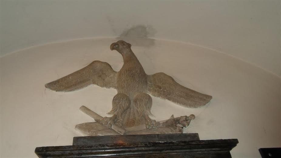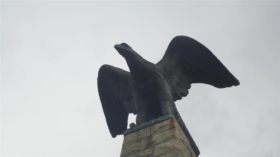 Orły w normie. Ten z krakowskiego klasztoru bezradnie rozkłada skrzydła, bo mu połamali szablę czy coś.:
