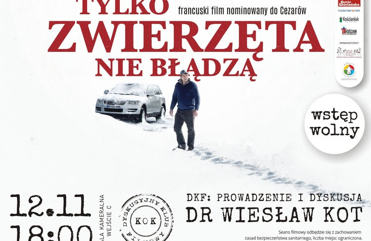 pretekst do naszego dzisiejszego spotkania jest taki, iż mamy na wieczór lekturę, jaką jest film francuski pt. „Tylko zwierzęta nie błądzą”, opisywany jako kryminał i thriller. Bo jakoś go zakwalifikować trzeba, ale gdy się mu bliżej przyjrzeć, daleko wykracza poza tę ramową formułkę. Świat zobaczył go latem 2019 roku, a do Polski z powodu pandemii nie dotarł wcale, no prawie wcale, czasami pokazują go w tak kameralnych warunkach jak nasze.