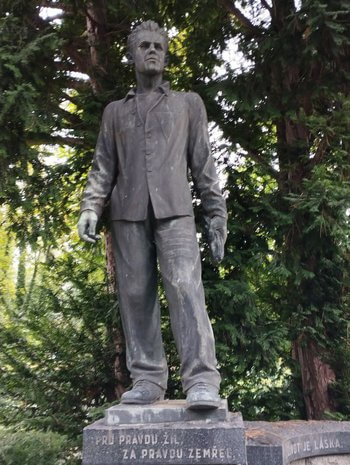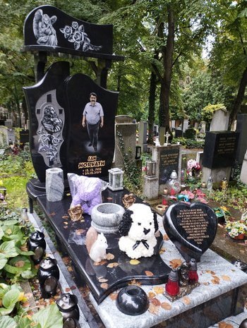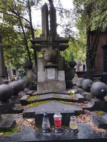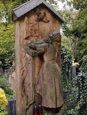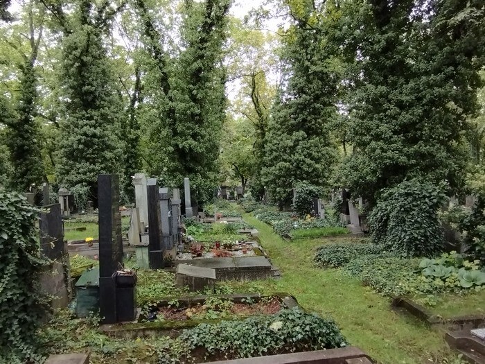 Z trasy. Praga. Cmentarz Hřbitov Malvazinky (tutejsze Powązki). Wizytowaliśmy grób Karela. Pan dozorca poinformował nas po angielsku, jak trafić. W drodze powrotnej podziękowaliśmy też po angielsku. Odpowiedział: „You’re welcome!”. W międzyczasie rzuciliśmy okiem na czeską kulturę grzebalną.: