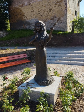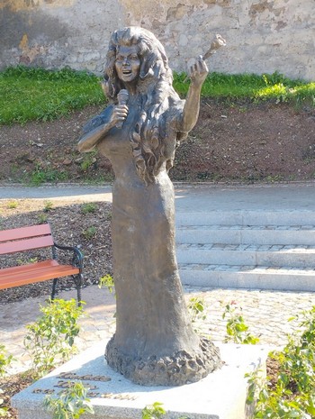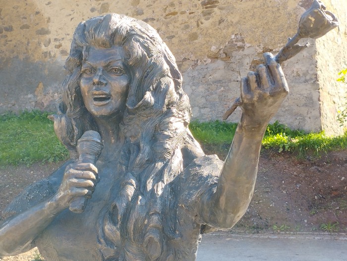 I ostateczny cel pielgrzymki. Lewin Kłodzki. Pomnik Violetty Villas. Jak kto mało odporny, może się przestraszyć. A nawet zejść na serce.: