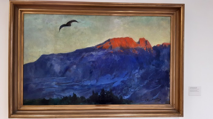 Później nieco nowości. Przykładowo Leon Wyczółkowski „Giewont o zachodzie słońca” 1898. Dokładnie taki widok mieliśmy z okien uniwersyteckiego pensjonatu przez kilka ładnych sezonów. A tu się okazuje, że Uniwersytet właśnie sprzedał pensjonat. W Warszawie z kolei, na Bartyckiej zamknęli hotelik w Centrum Badań Kosmicznych. Zatrzymywalismy się tam przez ostatnie lata dziesiątki razy (samo centrum, świetny dojazd, parking). Cóż, skończyła się pewna epoka…: