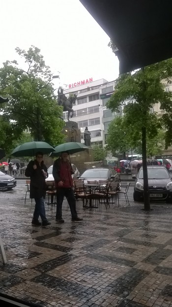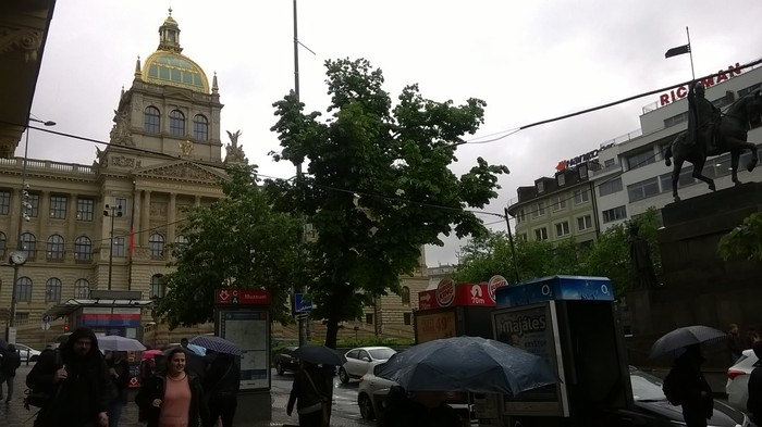 W Pradze leje. Nawet na zdjęciu w hotelu Most Karola po ulewie. Dorota miała umówione spotkanie z Marksem & Spencerem, a ja miałem się delektować tymczasem w pobliskim Muzeum Narodowym (świeżo po remoncie). Ale – może z powodu deszczu – kolejka do kasy była tak absurdalnie długa, że skończyło się na kawie w Starbucksie. A dyskusja o sztuce to dopiero po powrocie do hotelu.: