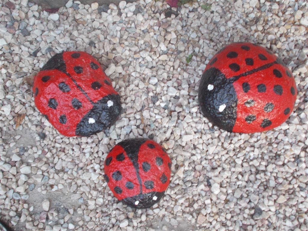 Ze zwierząt – przyuważyłem w jakiś ogródku takie kamienne biedronki.:
