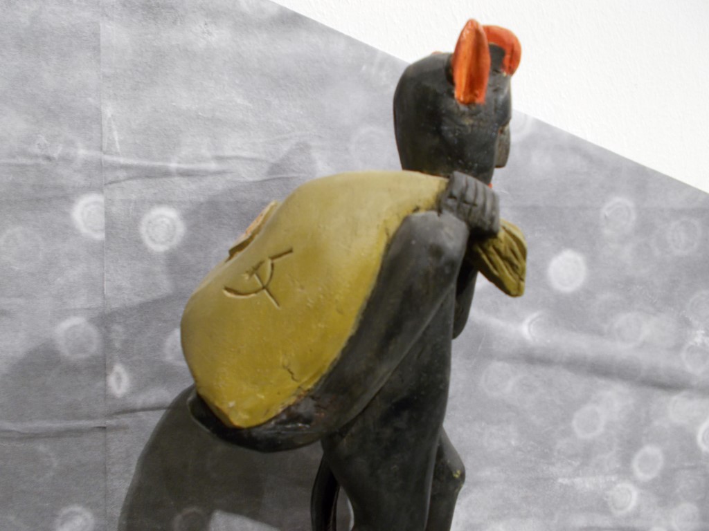 Muzeum Etnograficzne. Diabeł ma na worku nadrukowaną zawartość.: