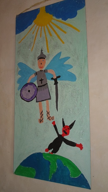 W kruchcie dziecięcy malunek (kościół pod wezwaniem św. Michała Archanioła). Lecz o Violetcie ni widu, ni słychu: