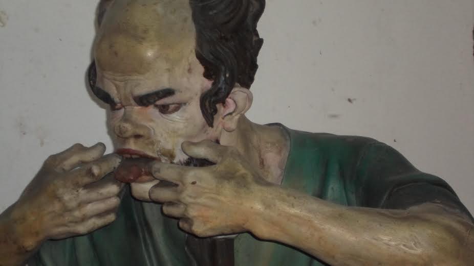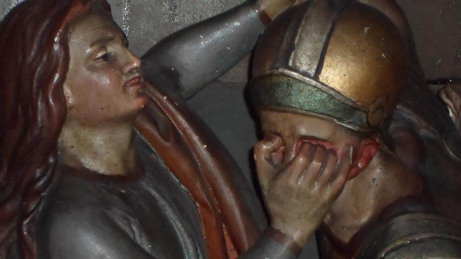 Żeby ją choć trochę uwznioślić religijnie pojechaliśmy do Wambierzyc. Tam – wiadomo – słynna bazylika i kalwaria. Tu – mnóstwo ciekawych rzeczy. Przykładowo: rzeźba rzymskiego żołnierza, który naigrawa się z Pana Jezusa. Jak byłem mały, sam robiłem podobne miny i już wtedy surowo mnie pouczano, że to bardzo nieładnie: