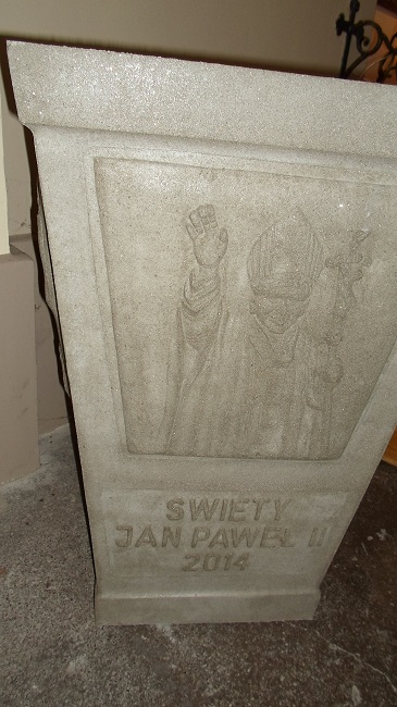 W Wambierzycach Kościół jest bardzo na bieżąco. Oto betonowy pojemnik na śmieci, ogarki świec itp. w miejscowej bazylice:
