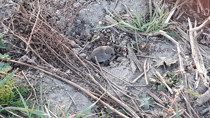 Poranek jak poranek. Z nowości tylko ta myszka polna, która sobie drzemie (omal bym nadepnął!), bo nie wstaje przed szóstą jak niektórzy idioci.: