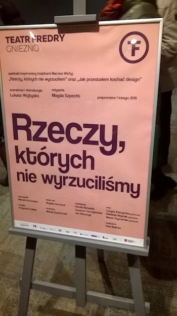 W pewnym mieście 4 lutego 2019Co niesie dzieńWiesław Kot Konkretnie w Gnieźnie (przez ostrą śnieżycę). Teatr im. Fredry. Inscenizacja prozy Marcina Wichy, o której już tu pisałem. Raczej wystawa i inscenizacja graciarni niż treści, które znamy z książki.:
