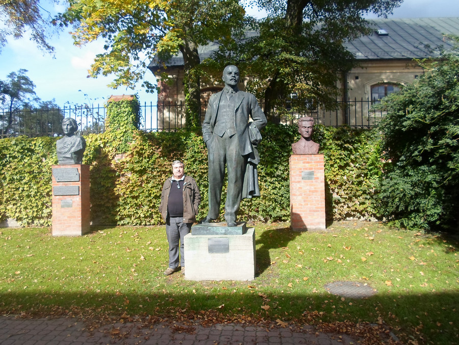 Widok z cokołu 2 października 2013Co niesie dzieńWiesław Kot Lenin (z prawej) i ja w drodze na rewolucję (Muzeum Socrealizmu w Kozłówce). Aktor Józef Nowak na uroczystej akademii w Sali Kongresowej wygłaszał wiersz o sytuacji jak ta na zdjęciu. Się przejęzyczył: „I szedł Lenin w rozpiętym napletku…”