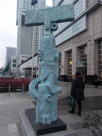Warszawa. U zbiegu Emilii Plater i Świętokrzyskiej rzeźba „Torreador”. Ależ to widać na pierwszy rzut oka. Po co podpisywać?: